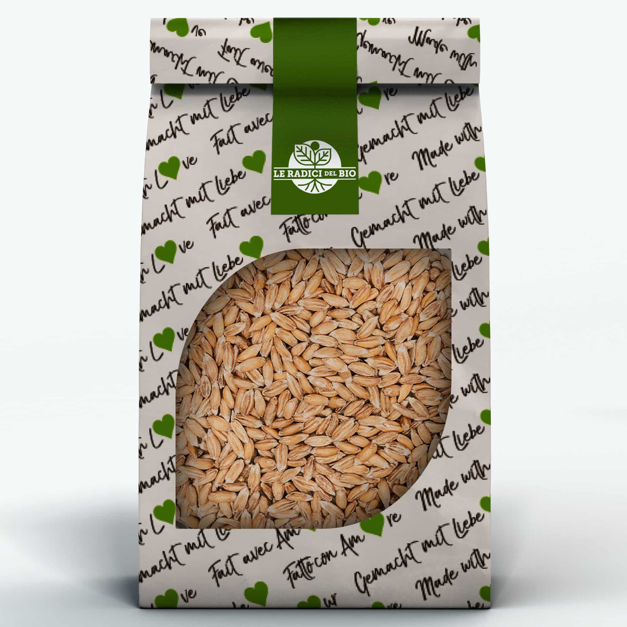 Loose Hulled Spelt from certified organic farming packaged with Love in eco-friendly paper packaging