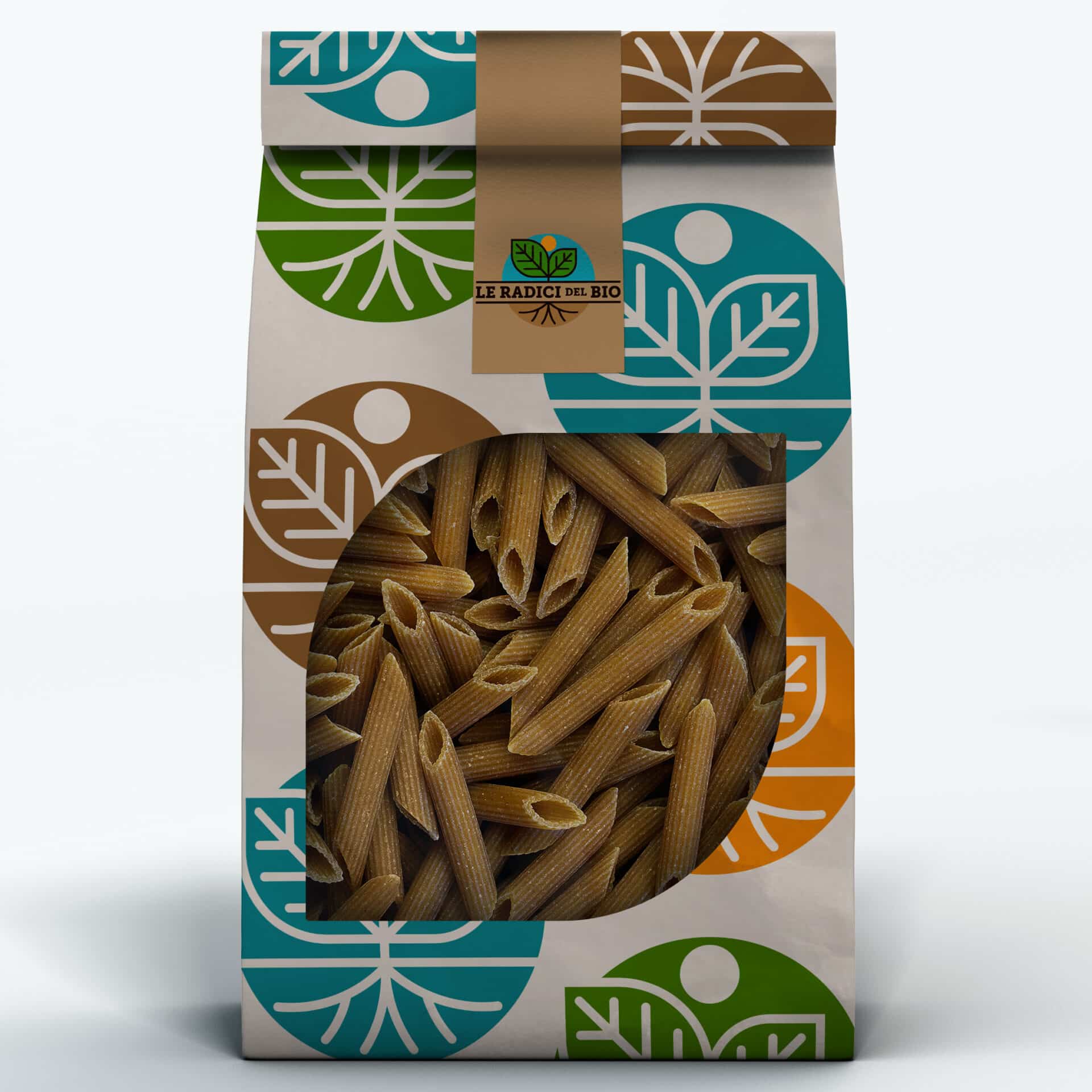 Penne bio intégrales étirées au bronze en vrac issue de l'agriculture biologique certifiée emballée avec amour dans un emballage en papier respectueux de l'environnement