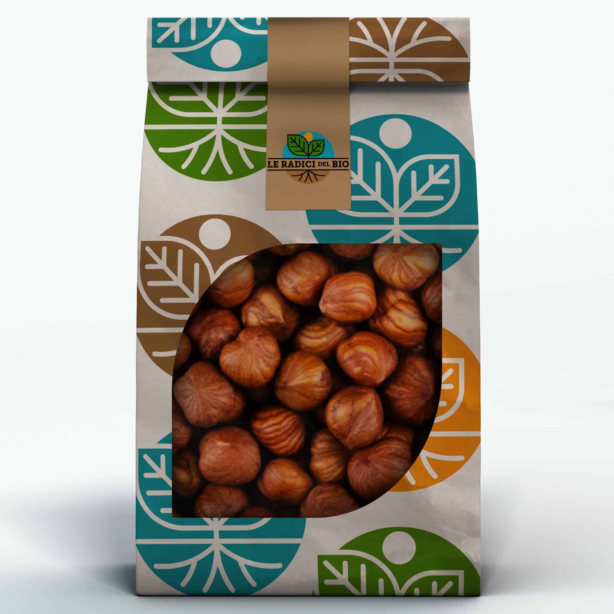 Nocciole varietà tonda Gentile Romana Sgusciate e Tostate sfuse da agricoltura biologica certificata confezionate con Amore in packaging in carta eco-friendly